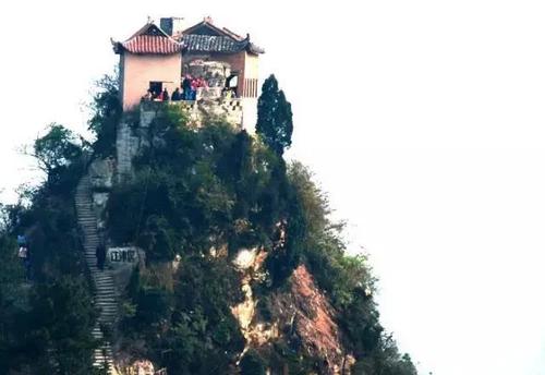雄峰与雌峰遥相呼应,山势纤巧秀丽,也更为险峻,要攀上雄峰,只有一条石径小道可攀,因山势陡峭,拾级而上时令人心惊目眩。峰顶建有一座老君庙,庙与山石相融,非常奇特。立于峰顶,平畴千里,东可望长江天际流,南可观雾海缥缈的云雾峰,西可与雌峰“窃窃私语”,北可观山峦叠嶂。雄峰又有“笋立玉屏”之美誉。