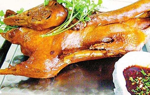 荣昌卤白鹅可是咱荣昌的一绝,且极其大众化,一只白鹅除了毛之外,全身上下皆可卤,卤鹅肉、卤鹅翅、卤鹅肝等等,每一样都有特别味道。卤鹅儿须选肉质好的荣昌白鹅,去毛取出内脏洗净,再将陈年老卤水烧开放入鹅儿,加入老姜、胡椒等香料,卤至20分钟后翻面,一般1小时卤成。卤白鹅要吃有名气的,最好还是尝尝五福街口的李鹅儿。李老四的卤鹅色泽金黄发亮,五香味浓,粑软适中,调料微辣、适口,姜葱味齐备。除了李老四卤鹅外,南门桥一带的卤鹅味道也正宗得很。