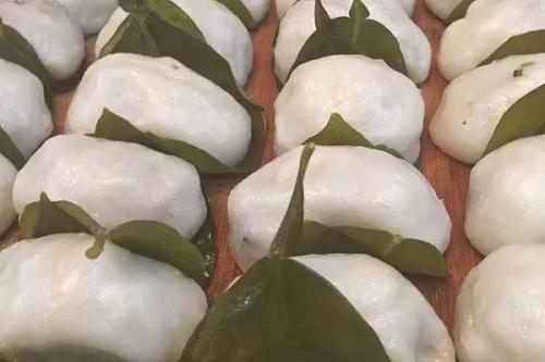 5.包叶蒸制:将洗好的巴叶顺纹路包裹耙坯,依次摆入蒸笼内,旺火蒸制(以锅内水沸腾为准),大笼40~50分钟,小笼20分钟。